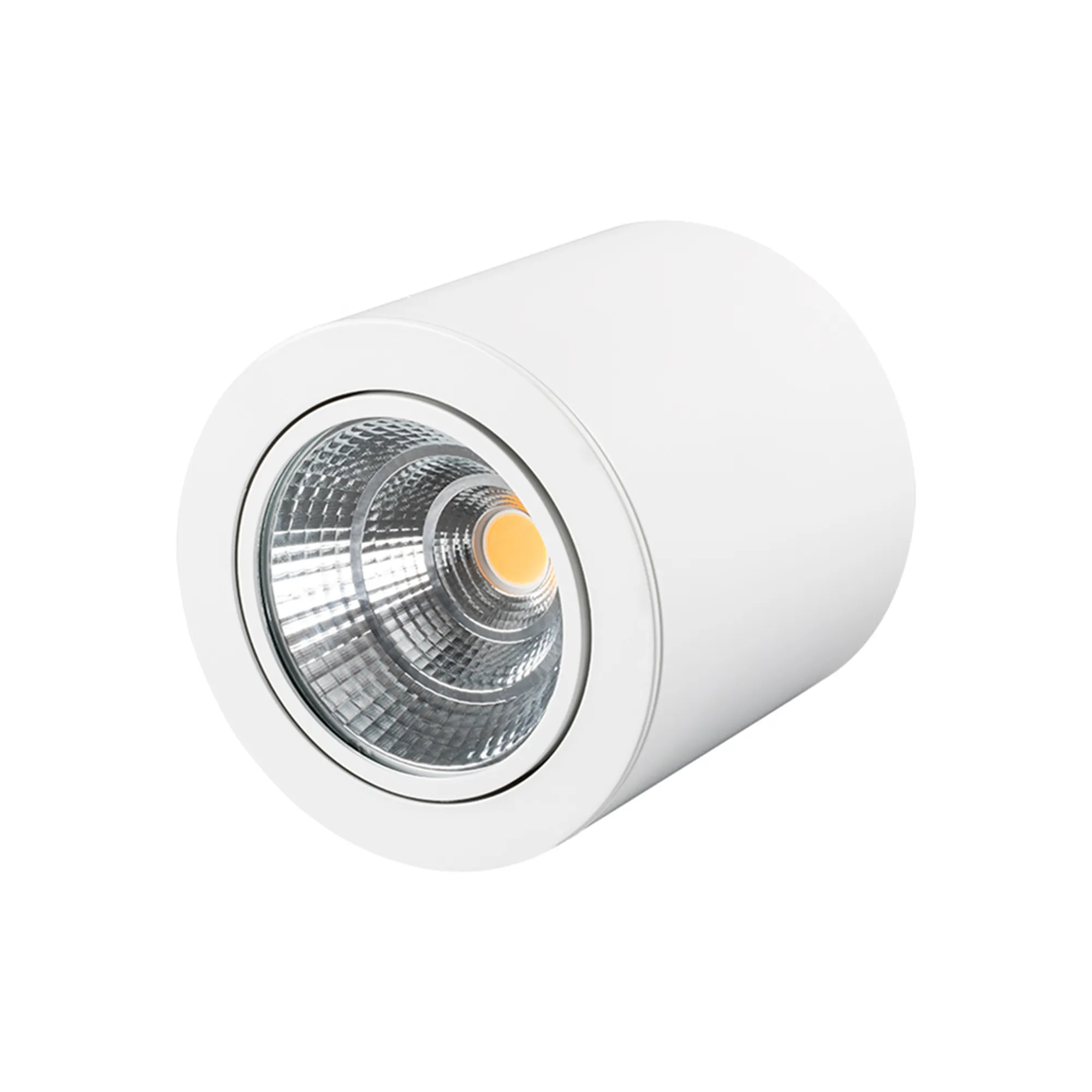 Накладной светильник 30Вт, белый корпус цилиндр. Цвет ТЕПЛЫЙ БЕЛЫЙ 3000K, св.поток 2400-2700лм, CRI(Ra)>80, наклоняемая ось, угол 24°. Размер Ф140x140 мм. Питание AC 180-240V, 30Вт, встроенный драйвер (DC 700mA 26-43V).