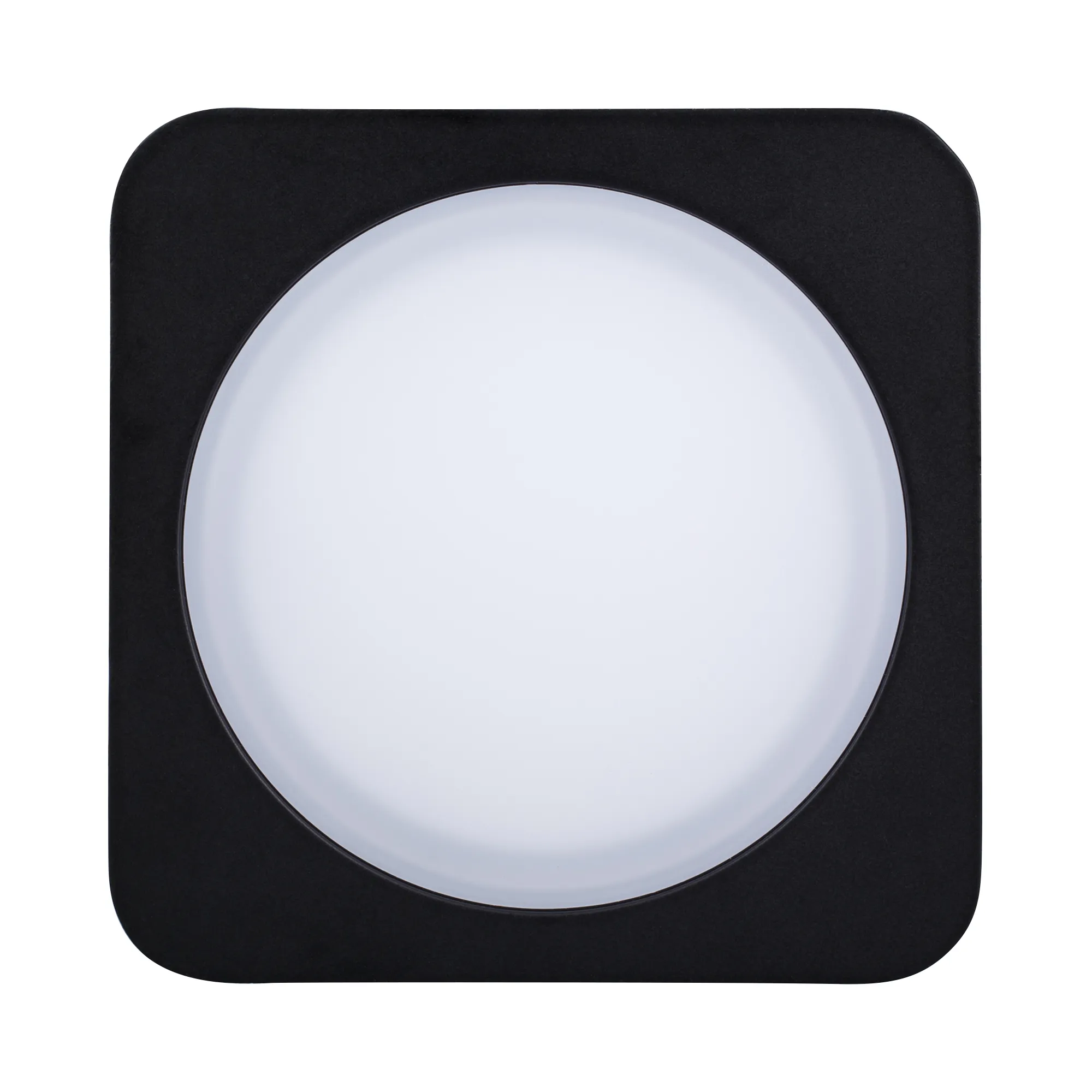 Квадратный светильник с контурным свечением. Корпус IP44 черный + вставка поликарбонат PC. Цвет ДНЕВНОЙ БЕЛЫЙ 4000К, св.поток 700 лм, угол 120°+180°. Питание 180-240VAC (драйвер в к-те 300mA 20-40V), мощность 10Вт. Размеры 96х96х42 мм, установка в отв.80х80 мм, высота мин.40 мм.