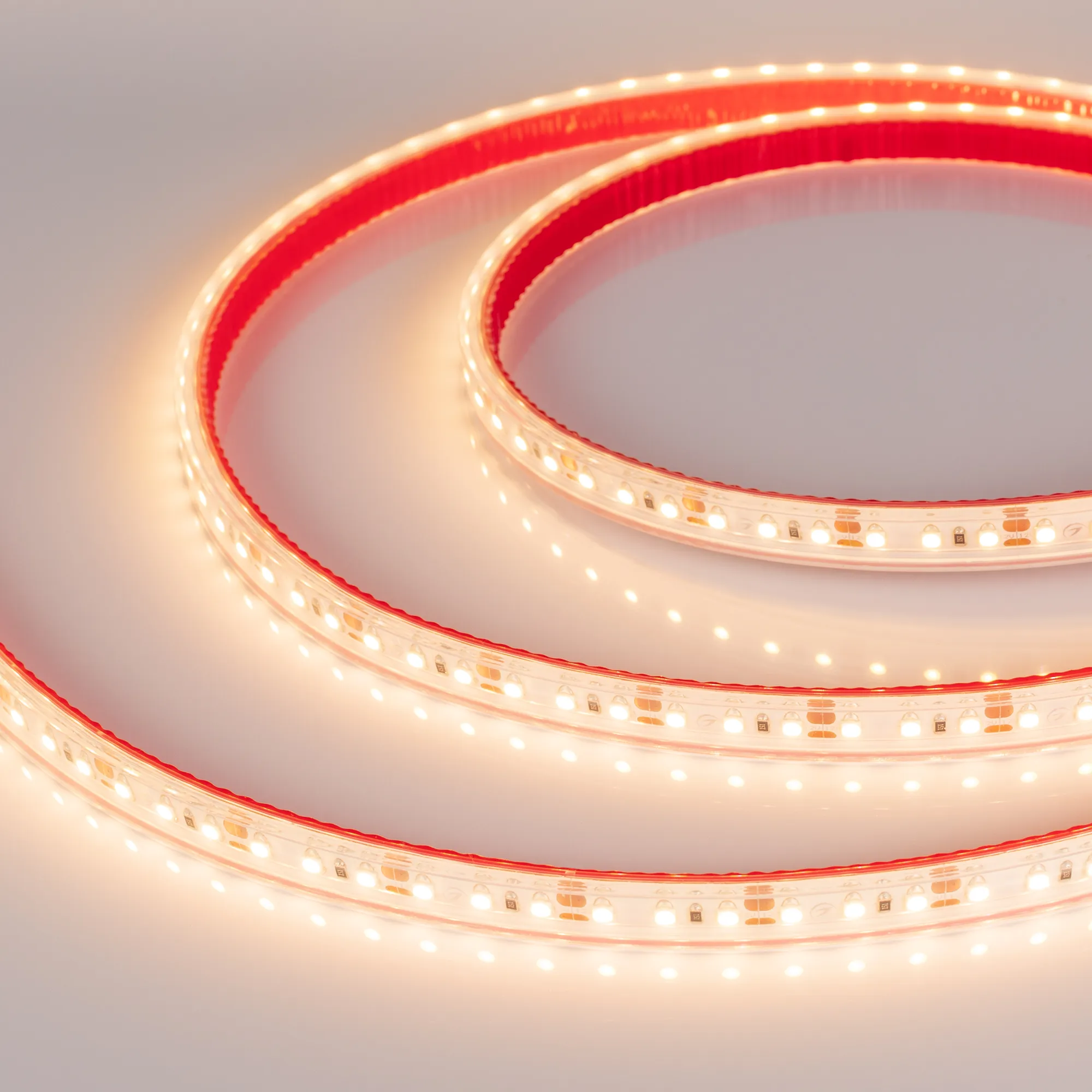 Герметичная IP67C (С-улучшенная цветопередача) в усиленной силиконовой трубке лента LUX, светодиоды 2X smd 3528, 120шт/м (600шт на 5м), белая плата 8мм, скотч 3М. Цвет ТЕПЛЫЙ БЕЛЫЙ 2900-3100K. Питание 12В, мощность 9,6 Вт/м (48 Вт на 5м), угол 120°. Размеры 5000х11х5мм. Мин.отрезок 25мм (3 LED). Цена за 1м.