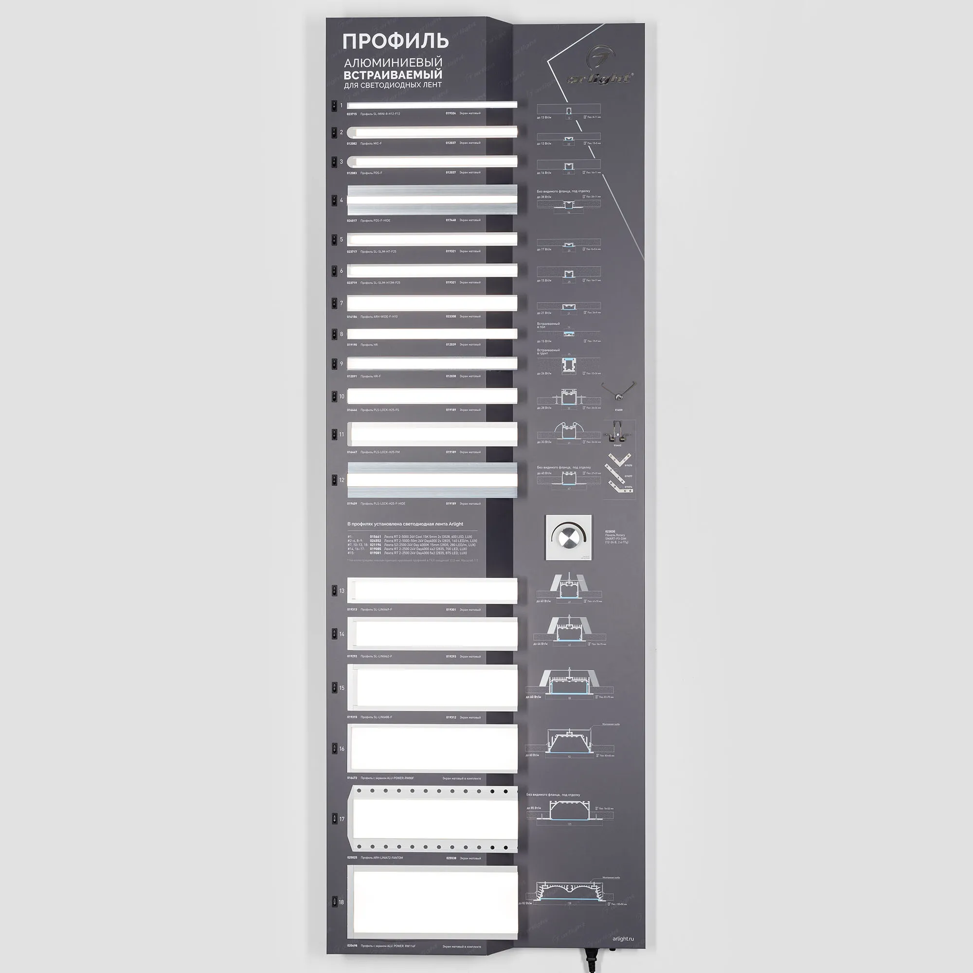 Наши специалисты знают все о продукции Arlight и с радостью помогут Вам выбрать комплектующие к товару "Стенд Профиль Встраиваемый LUX-E13-1760x600mm (DB 3мм, пленка, подсветка) (Arlight, -)", или другие товары из раздела "Алюминиевые профили SL".