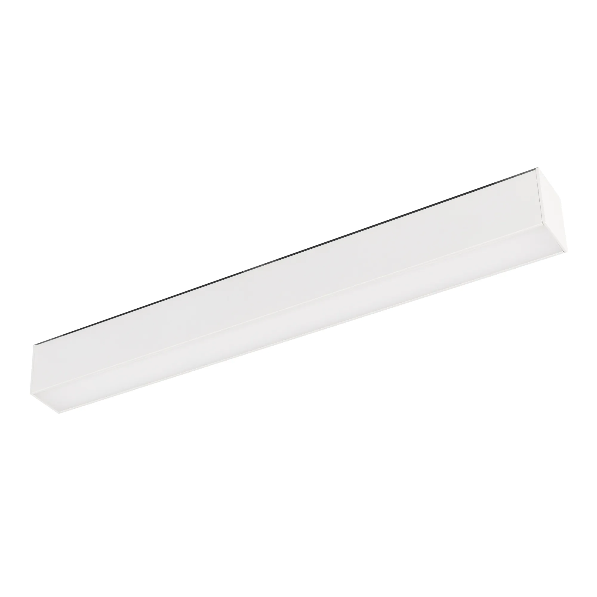 Светильник для магнитных треков шириной 45мм, 12Вт. Цвет свечения ТЕПЛЫЙ 3000K, световой поток 1200лм, угол 100°, CRI>90. Корпус прямоугольный, металл, цвет белый, IP20. Размеры LxWxH 404x35x43мм. Входное напряжение DC24V, мощность 12Вт. Драйвер DС24V/AC230V поставляется отдельно. Диммируется только с 026407(1), 027633.