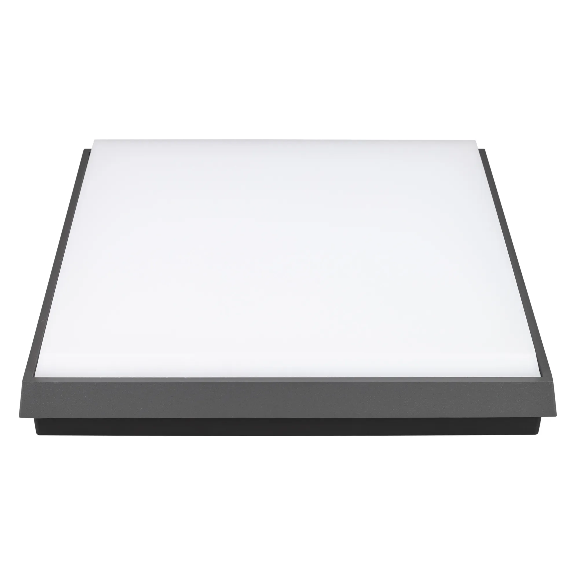 Накладной светильник 30Вт, серый алюминиевый корпус, матовый рассеиватель из поликарбоната. Цвет ТЕПЛЫЙ БЕЛЫЙ 3000K, св.поток 2630лм, CRI(Ra)>80, угол 110°. Размер 300x300x50мм. IP54. Питание AC220-240V, 30Вт, встроенный драйвер.