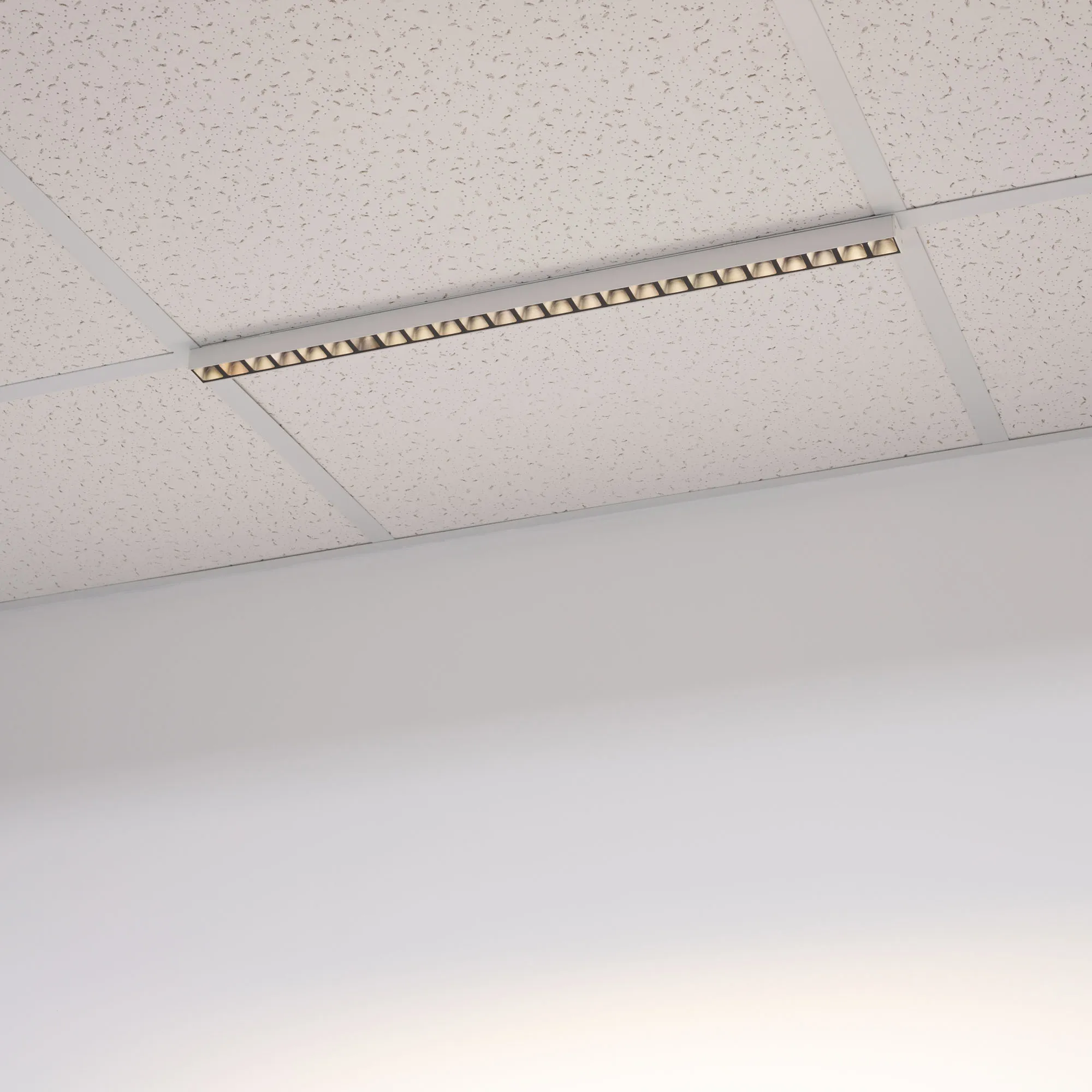 Светодиодный светильник для направляющих потолка Армстронг шириной 15 и 24 мм. Мощность 14 Вт, св. поток 1271 лм, 88 лм/Вт, дневной 4000K, CRI>80, угол 80°, напряжение питания 48 В. Белый квадратный корпус из алюминия, экран PC, степень защиты IP40. Размер: длина 600 мм, ширина 25 мм, высота 28 мм. Монтаж накладной. Драйвер поставляется отдельно.