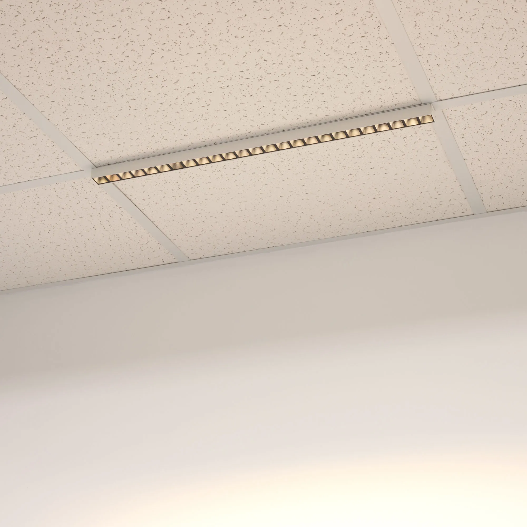 Светодиодный светильник для направляющих потолка Армстронг шириной 15 и 24 мм. Мощность 14 Вт, св. поток 1190 лм, 76 лм/Вт, теплый 3000K, CRI>80, угол 80°, напряжение питания 48 В. Белый квадратный корпус из алюминия, экран PC, степень защиты IP40. Размер: длина 600 мм, ширина 25 мм, высота 28 мм. Монтаж накладной. Драйвер поставляется отдельно.