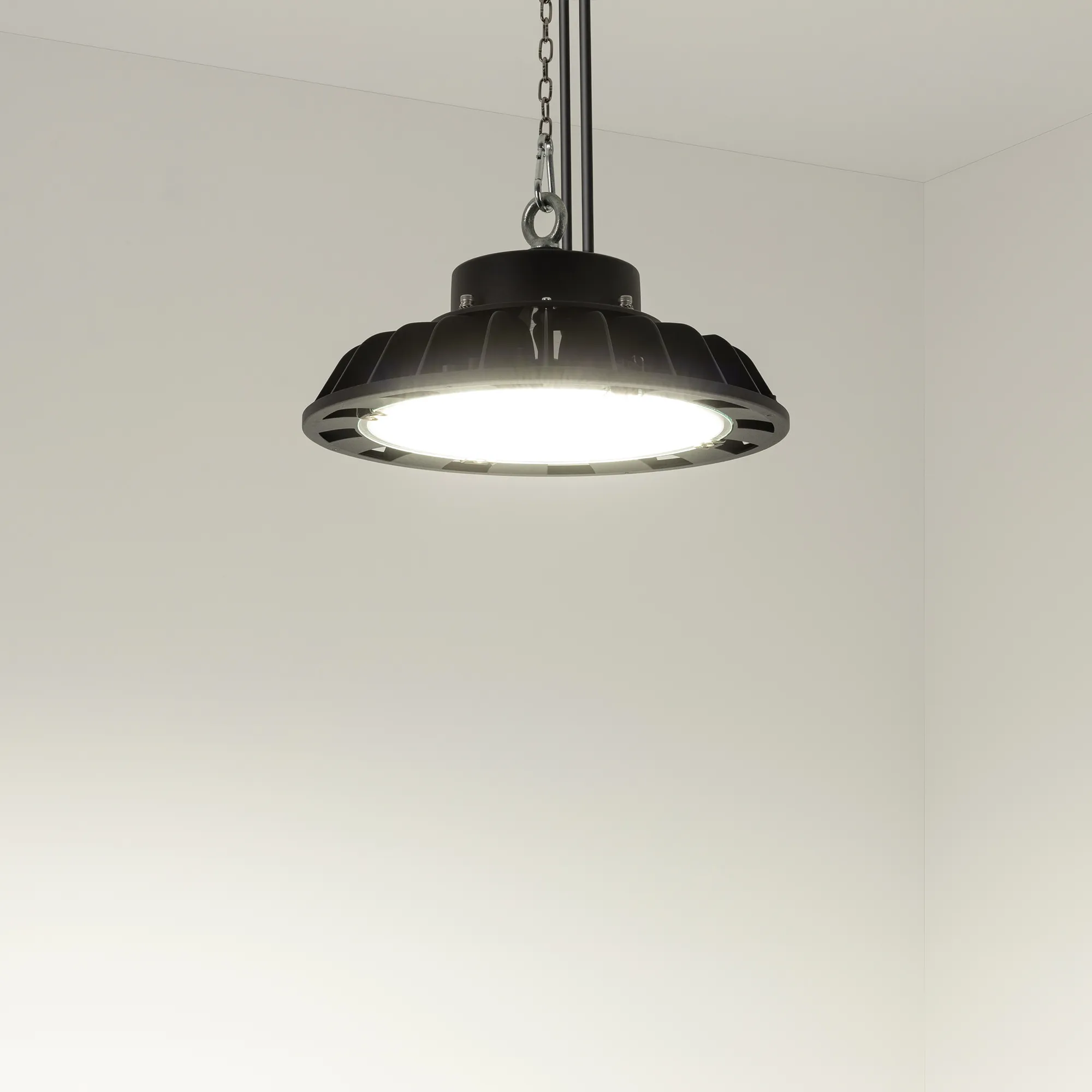 Поставка под заказ от 200 шт. Светильник для освещения складских и промышленных помещений. Мощность 80W, напряжение питания AC 220-240V/50Hz.CRI 80. Тип светодиодов SMD2835, с групповой оптической линзой. Цвет свечения ДНЕВНОЙ 5000K, световой поток 12800 Lm, угол рассеивания 90°. Цвет корпуса серый, линза из поликарбоната, степень влагозащиты IP65. Диаметр 295мм. Рым-болт в комплекте.