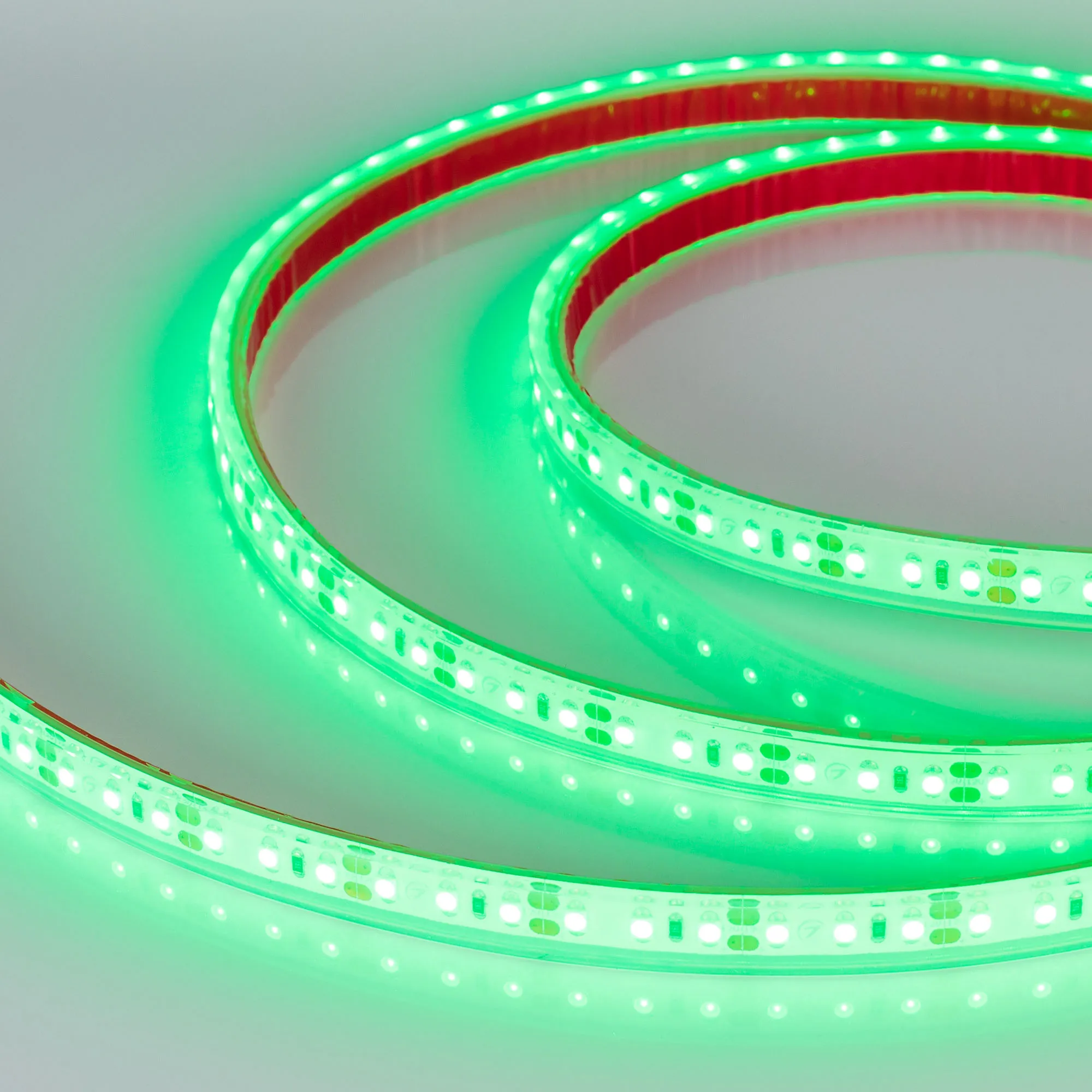 Герметичная IP67 (плата в силикон.трубке+герметик) гибкая лента LUX, светодиоды 2X smd 3528, 120шт/м (600шт на 5м), белая плата 8мм, скотч 3М. Цвет ЗЕЛЁНЫЙ. Питание 12В, мощность 9,6 Вт/м (48 Вт на 5м), угол 120°. Размеры 5000х11х5мм. Мин.отрезок 25мм (3 LED). Цена за 1м.Заменяется 033792.