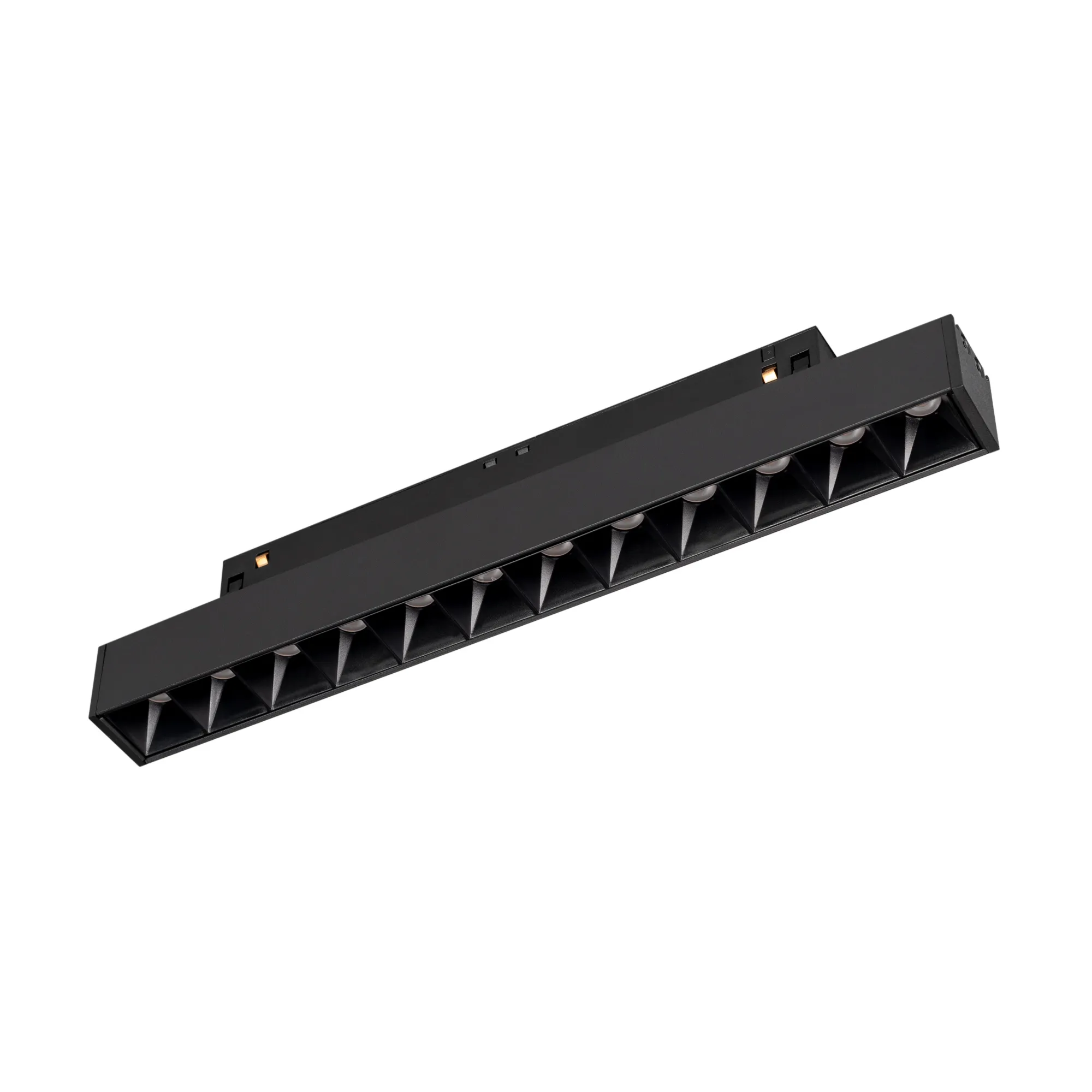 Светильник для магнитных треков MAG-ORIENT шириной 26 мм. Мощность 8 Вт, св. поток 460 лм, 58 лм/Вт, дневной 4000 K, CRI>90, угол 24°, напряжение питания 48 В. Черный прямоугольный корпус из металл, экран поликарбонат, степень защиты IP20. Размер: длина 235 мм, ширина 22 мм, высота 42 мм. Монтаж на трек MAG-ORIENT. Пульсация <1%.