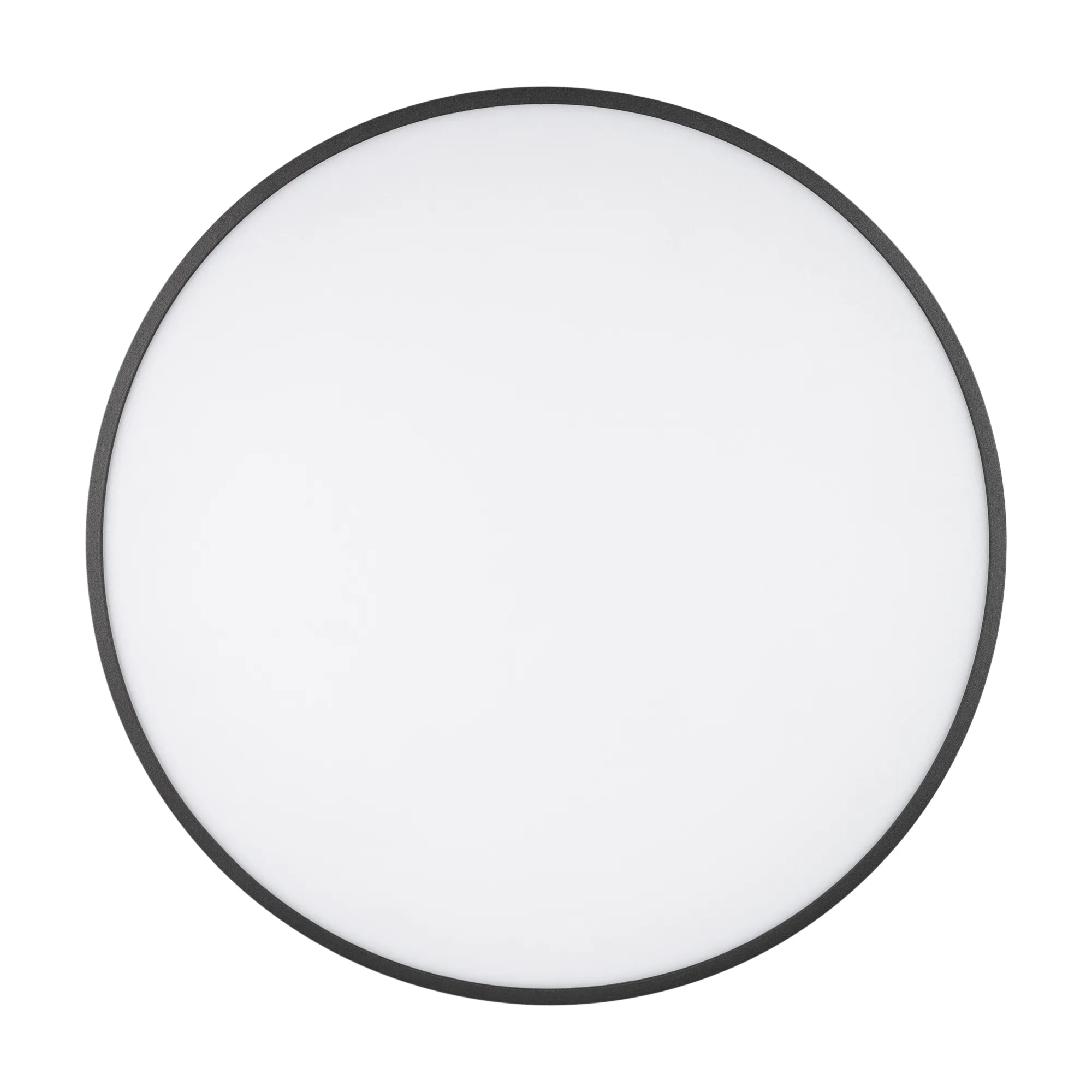 Накладной светильник. Мощность 30 Вт, св. поток 2200 лм, 75 лм/Вт, теплый 3000 K, CRI>90, угол 120°, напряжение питания 230 В. Черный круглый корпус из алюминия, экран PC, степень защиты IP40. Размер: диаметр 350 мм, высота 64 мм. Монтаж накладной. Драйвер 27-42 В, 800 мА, пульсация <5%.