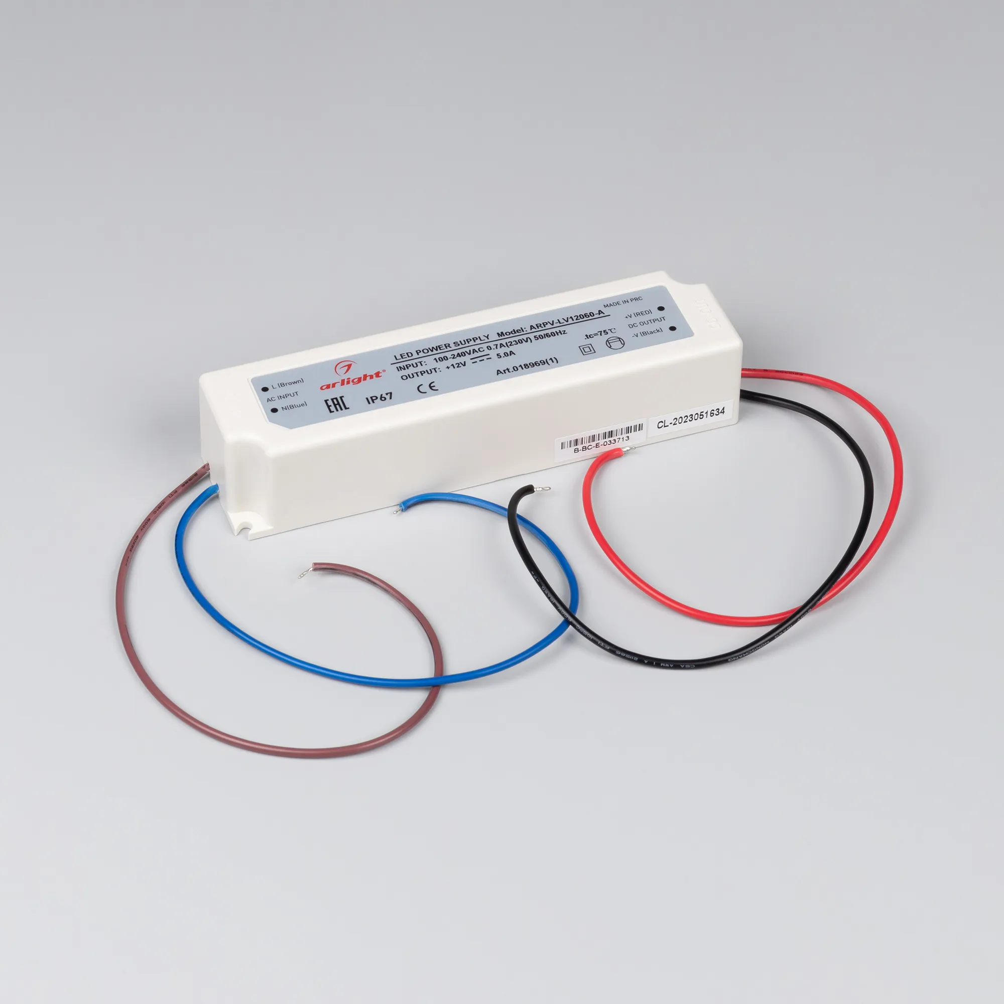 Наши специалисты знают все о продукции Arlight и с радостью помогут Вам выбрать комплектующие к товару "Блок питания ARPV-LV12060-A (12V, 5.0A, 60W) (Arlight, IP67 Пластик, 3 года)", или другие товары из раздела "герметичные [IP67, пластик]".