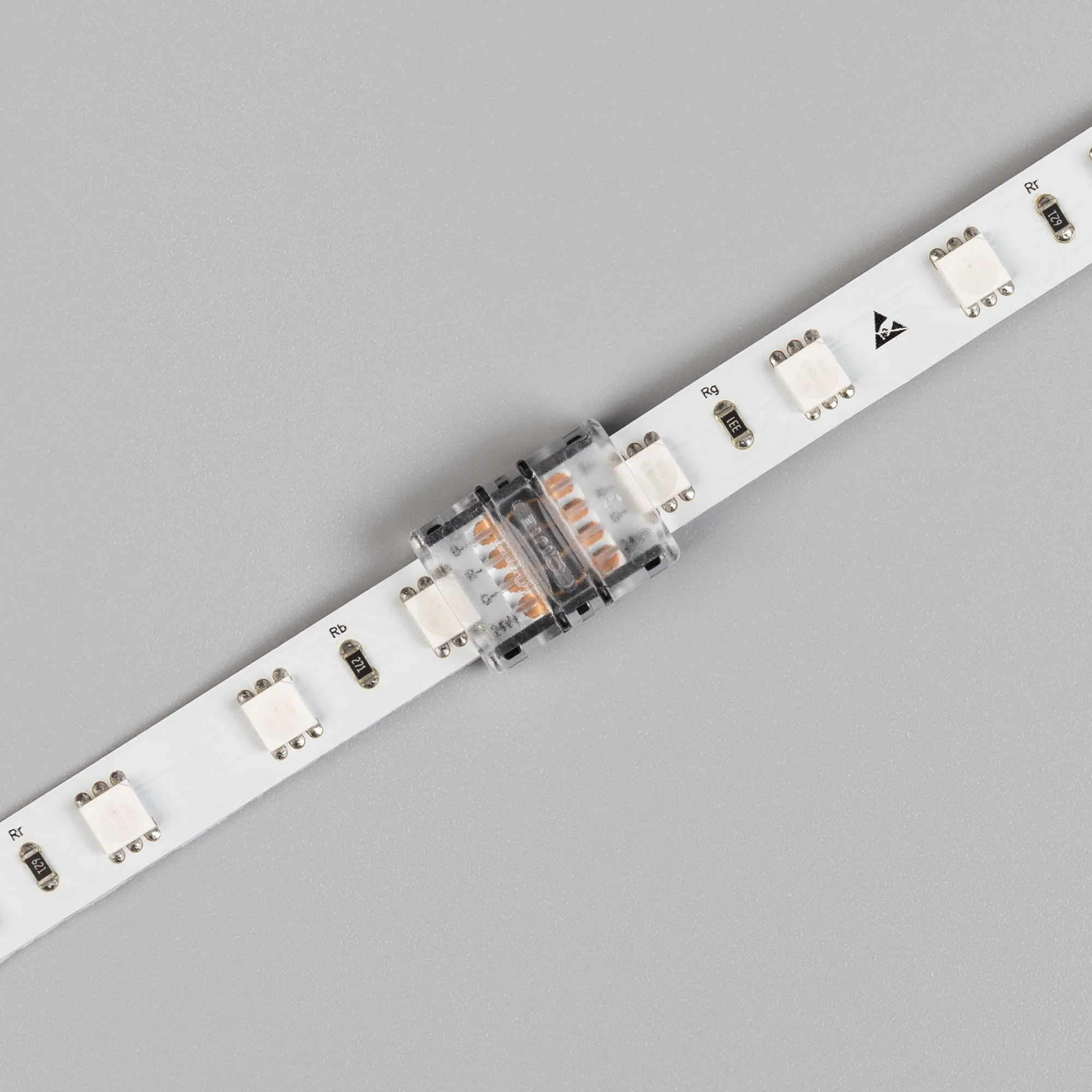 Одиночный коннектор для соединения 2-х отрезков открытых лент RGB шириной 10 мм. Материал - прозрачный пластик. Обеспечивает соединение без видимых разрывов. Максимальный допустимый ток 3 А, напряжение 3-24 В, степень защиты IP55. Цена за 1 шт.
