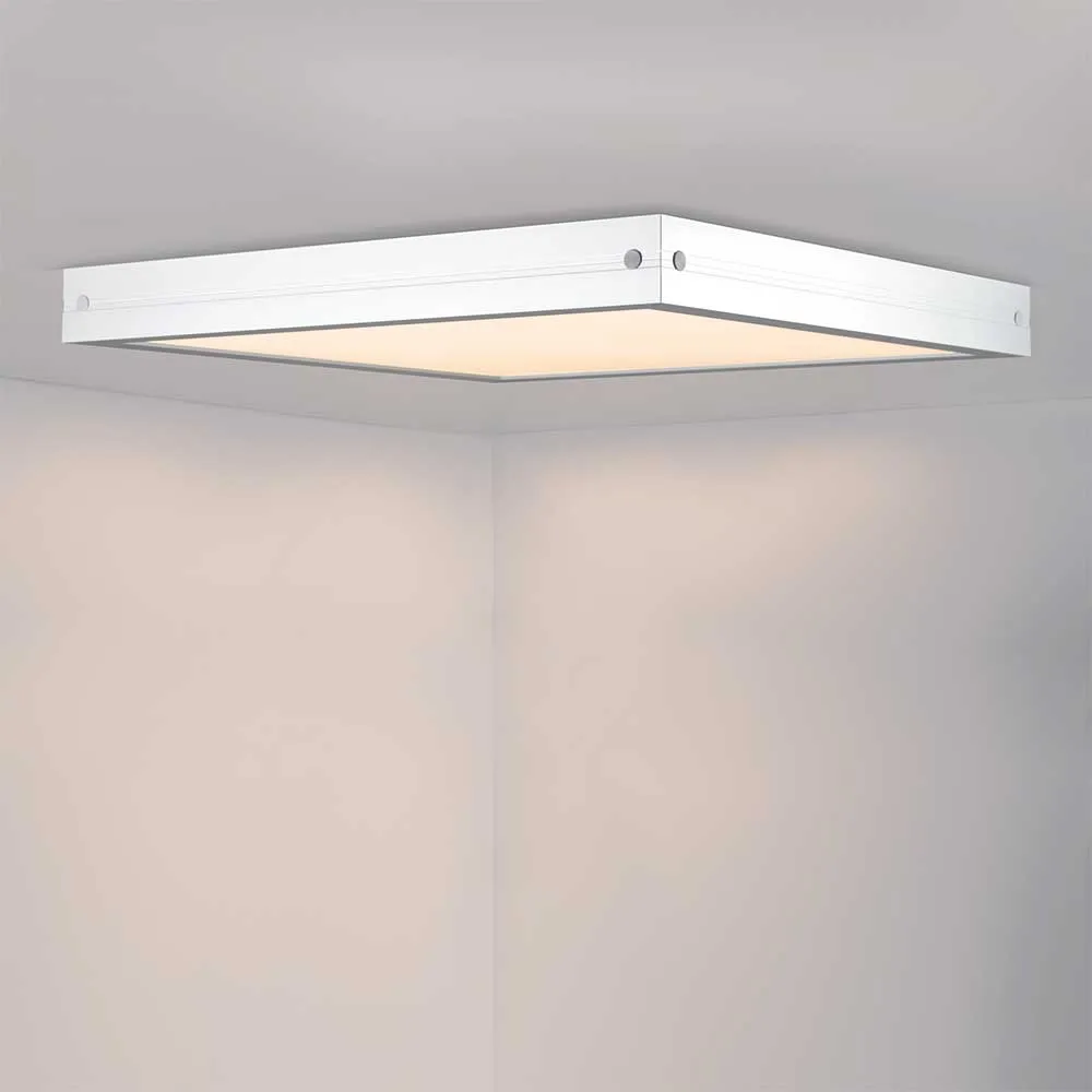 Светодиодная панель с торцевой заcветкой. Мощность 40 Вт, св. поток 3600 лм, 90 лм/Вт, белый 6000 K, CRI>80, угол 110°, напряжение питания 230 В. Белый квадратный корпус из алюминия, экран PS, LGP PMMA, степень защиты IP40. Размер (Д×Ш×В) 595×595×9 мм. Монтаж с креплением. Драйвер 39 В, 950 мА, пульсация <1%.