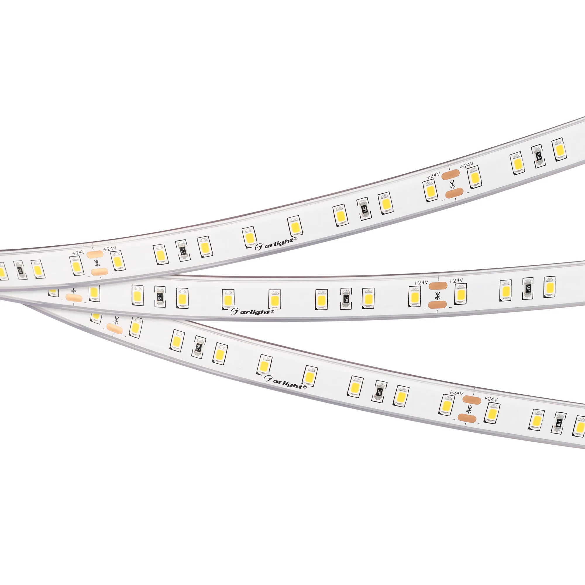 Светодиодная герметичная лента RTW серии A80, IP67 (PS - силиконовая экструзия). Светодиоды SMD 2835, 80 шт/м, белая плата шириной 10 мм, скотч 3M. Цвет БЕЛЫЙ 6000K, индекс цветопередачи CRI>85, угол 120°. Питание 24 В, мощность 4.8 Вт/м (24 Вт на 5 м). Размеры 5000x12x4 мм. Мин. отрезок 100 мм, 8 светодиодов. Цена за 1 м. Диапазон рабочих температур окружающей среды -25..100°С.