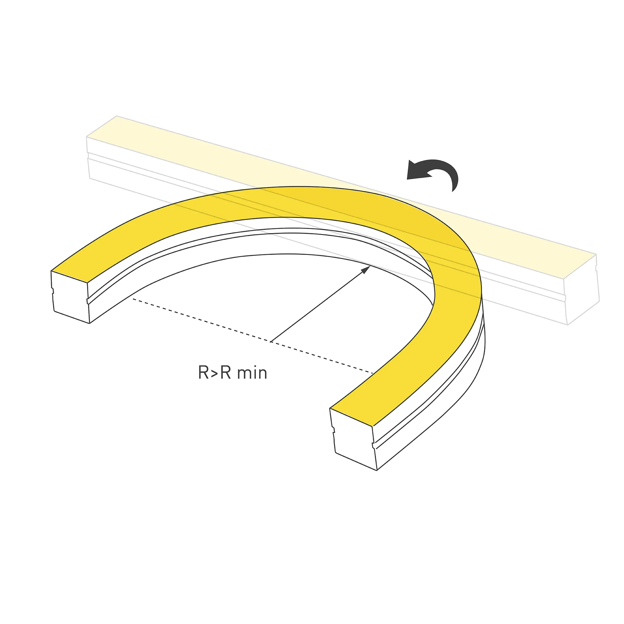 Гибкая герметичная лента (неон серии MOONLIGHT), сечение 20×20 мм. Светодиоды CSP 280 шт/м. Цвет свечения ТЕПЛЫЙ (2700К), индекс цветопередачи CRI>90, световой поток 460 лм/м, угол излучения 114°. Мощность 10 Вт/м, питание 24 В. Класс пылевлагозащиты IP67. Размеры 15000×20×20 мм. Мин. отрезок 50 мм. Горизонтальный изгиб SIDE, минимальный радиус изгиба 180 мм. Катушка 15 м. Цена за 1 м. Гарантия 5 лет.