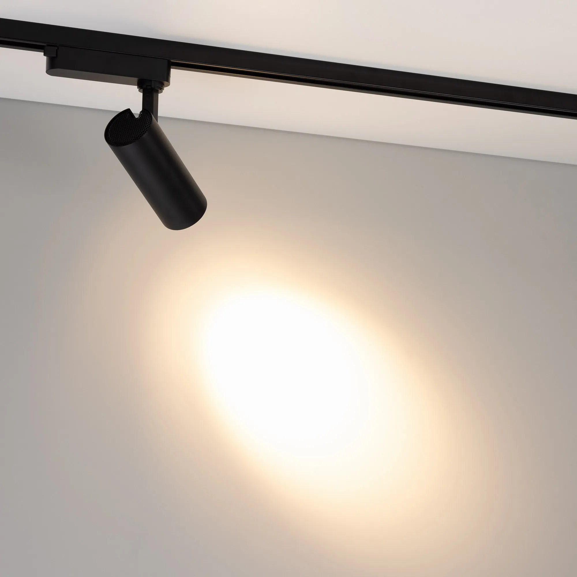 Светильник для треков/шин 2 провода. Мощность 10 Вт, св. поток без решетки honeycomb 1000 лм, 100 лм/Вт, с решеткой honeycomb 660 лм, 66 лм/Вт, теплый 3000 K, CRI>90, угол 24°, напряжение питания 230 В. Черный круглый корпус из алюминия, материал линзы PMMA, степень защиты IP20. Размер: диаметр 55 мм, длина световой части 141 мм. Монтаж на трек 1-фазный. Драйвер встроенный 25-40 В, 250мА., пульсация <5%.