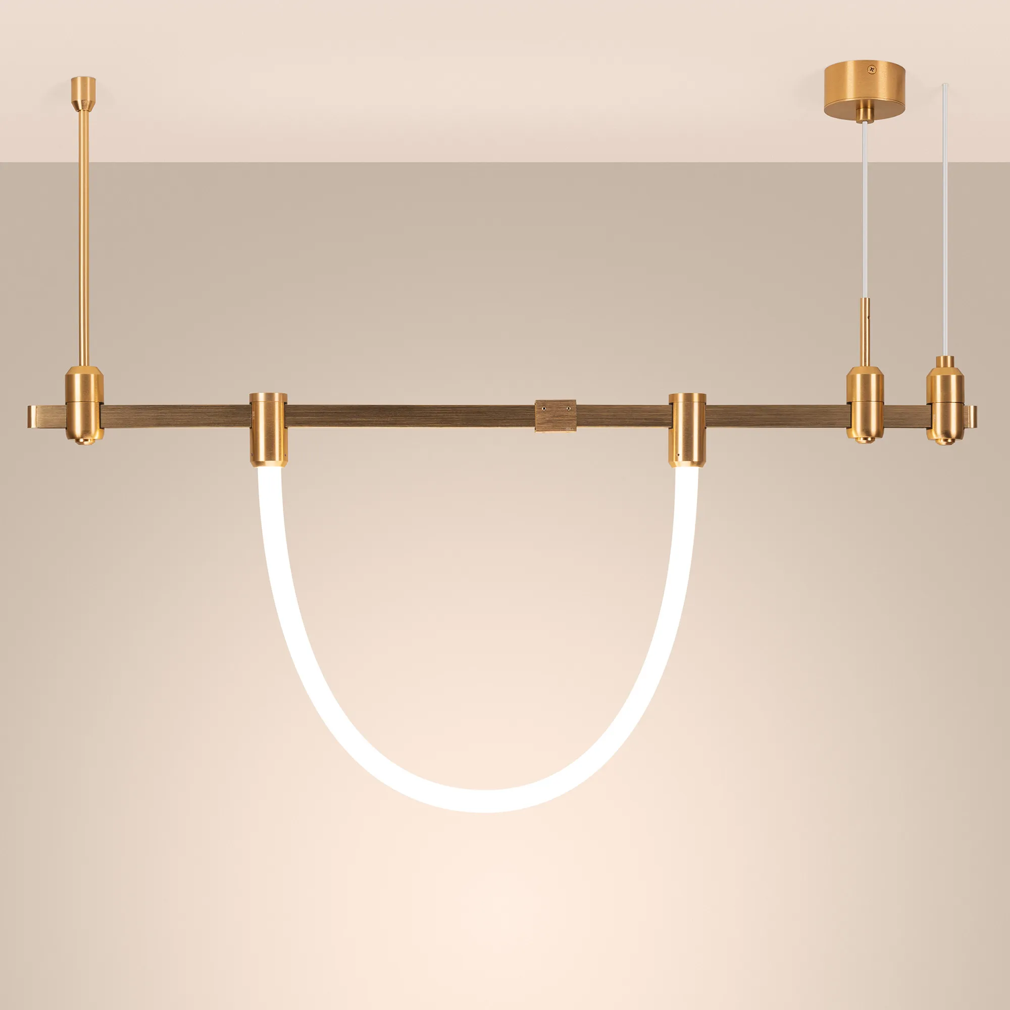 Под заказ от 30 шт Светильник гибкий для треков APRIORI шириной 17 мм. Мощность 25 Вт, св. поток 1500 лм, 60 лм/Вт, теплый 3000 K, CRI>90, угол 360°, напряжение питания 48 В. Матовый белый фигурный корпус из силикона с креплениями, гальванизированными в цвет светлое золото, степень защиты IP20. Размер: длина 3000 мм, диаметр 38 мм. Диаметр крепления 38 мм. Высота крепления 70 мм. Монтаж на трек APRIORI 17 мм. Пульсация <1%. Возможно диммирование по ШИМ (PWM) или не адресное управление при использовании диммируемого драйвера Dali, 0-10V, TRIAC.