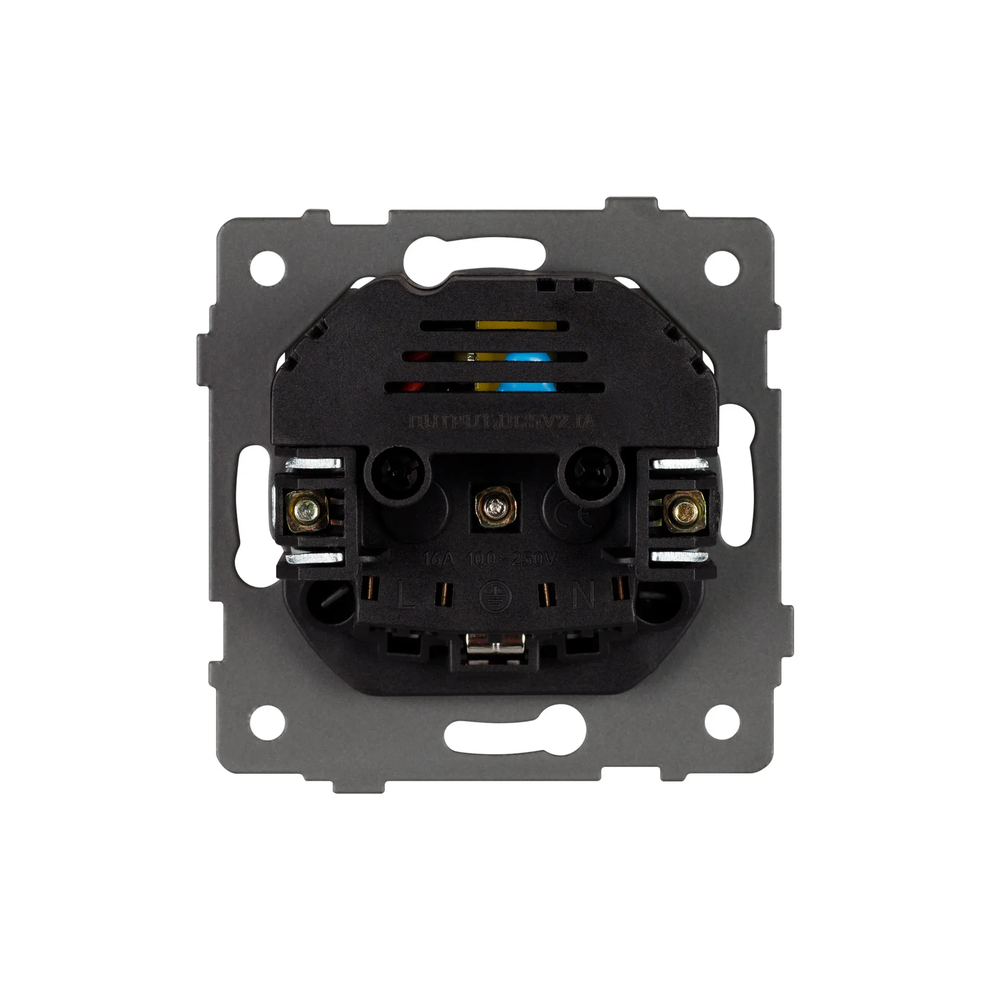 Механизм розетки с заземлением 1 пост 2 USB Type A+C порта. Цвет - белый. Без фронтальной рамки. Уровень пылевлагозащиты IP20. Устанавливается в стандартный подрозетник.