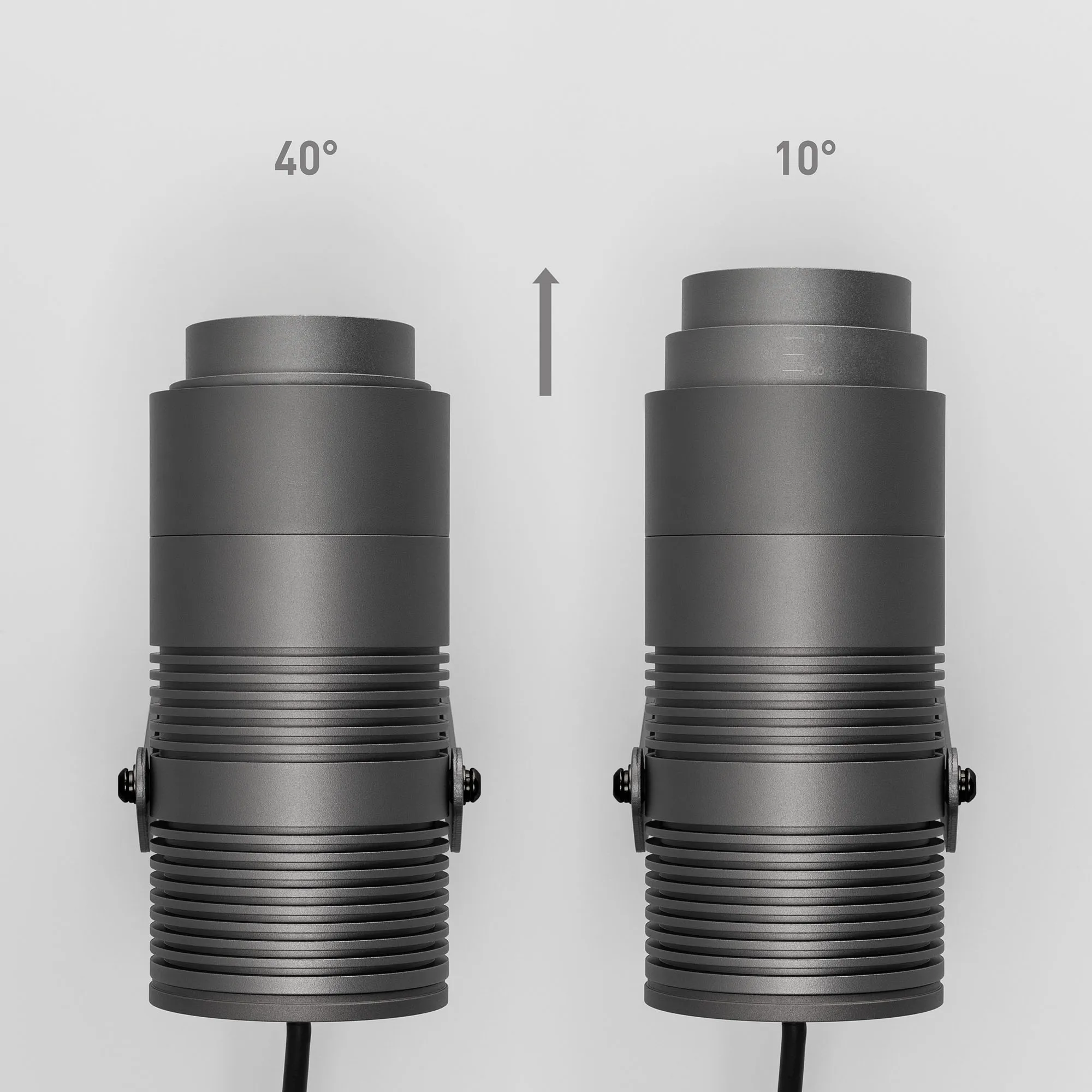 Уличный светодиодный прожектор, мощность 18Вт, регулируемый угол освещения 10-40°. Цвет ДНЕВНОЙ 4000К, световой поток для угла 10° 500 для угла 40° 800лм. Влагозащищенный корпус IP67 - темно-серый алюминий, экран из закаленного стекла. Угол поворота корпуса в вертикальной плоскости 135°. Питание 230В, мощность 18 Вт. Размеры DxH - Ø75x150мм. В комплекте 1м провод.