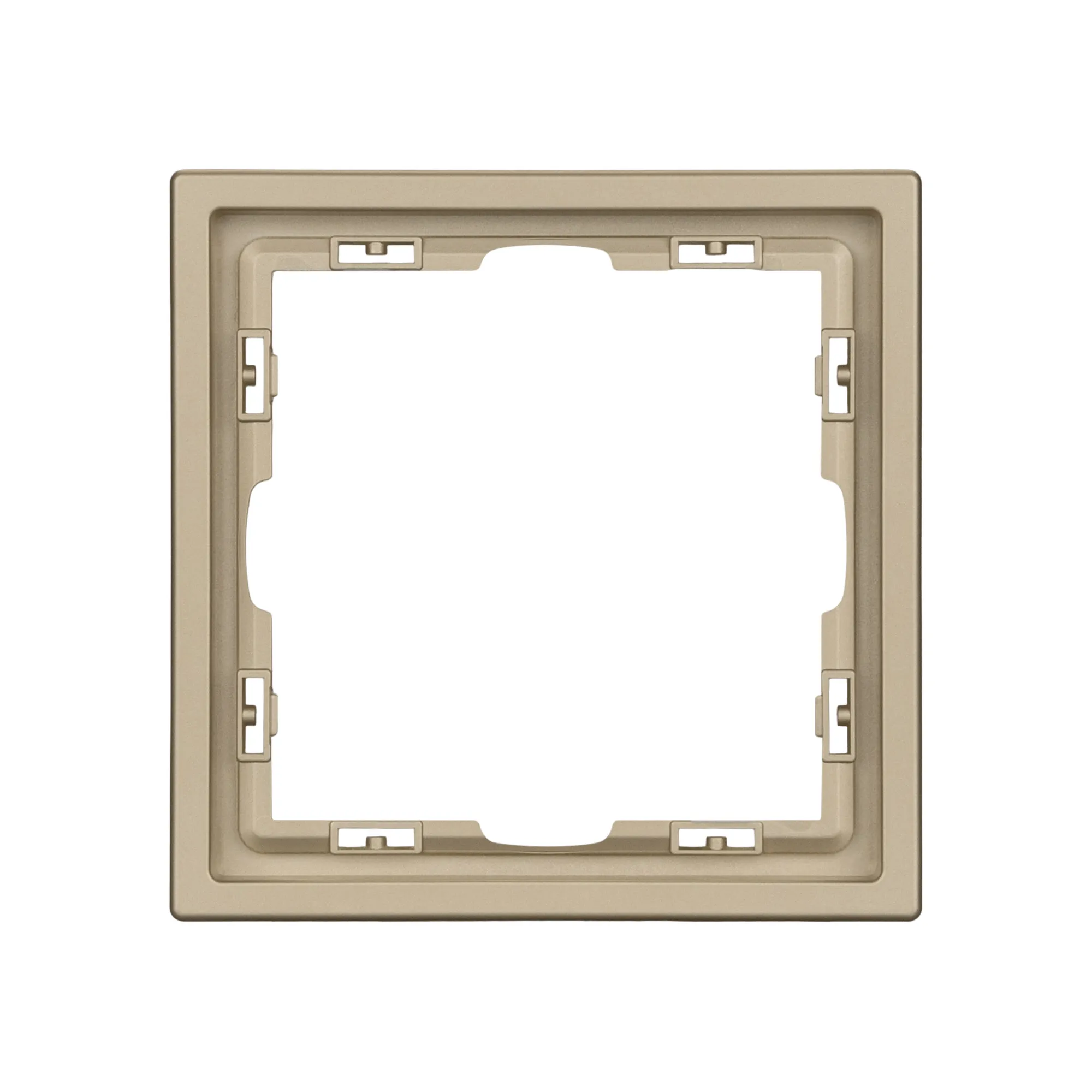 Рамка пластиковая на 1 пост, под встраиваемый механизм. Цвет - золотой, с Soft-Touch покрытием. Среднего уровня герметичности IP20. Ориентация монтажа горизонтальная.