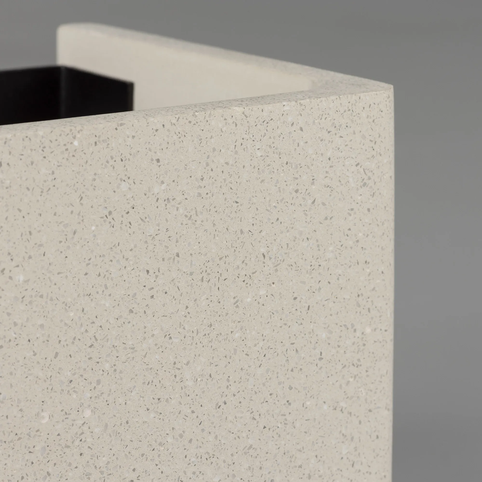 Накладной настенный светильник, свечение вверх/вниз. Мощность 6 Вт, св. поток 286 лм, 49 лм/Вт, теплый 3000 K, CRI>90, изменяемый угол освещения 0°-80°, напряжение питания 230 В. Фигурный корпус из бетона белого цвета и алюминия, экран ударопрочный PC, степень защиты IP65. Размер: длина 120 мм, ширина 120 мм, высота 120 мм. Монтаж накладной. Драйвер встроенный, пульсация <0.5%.